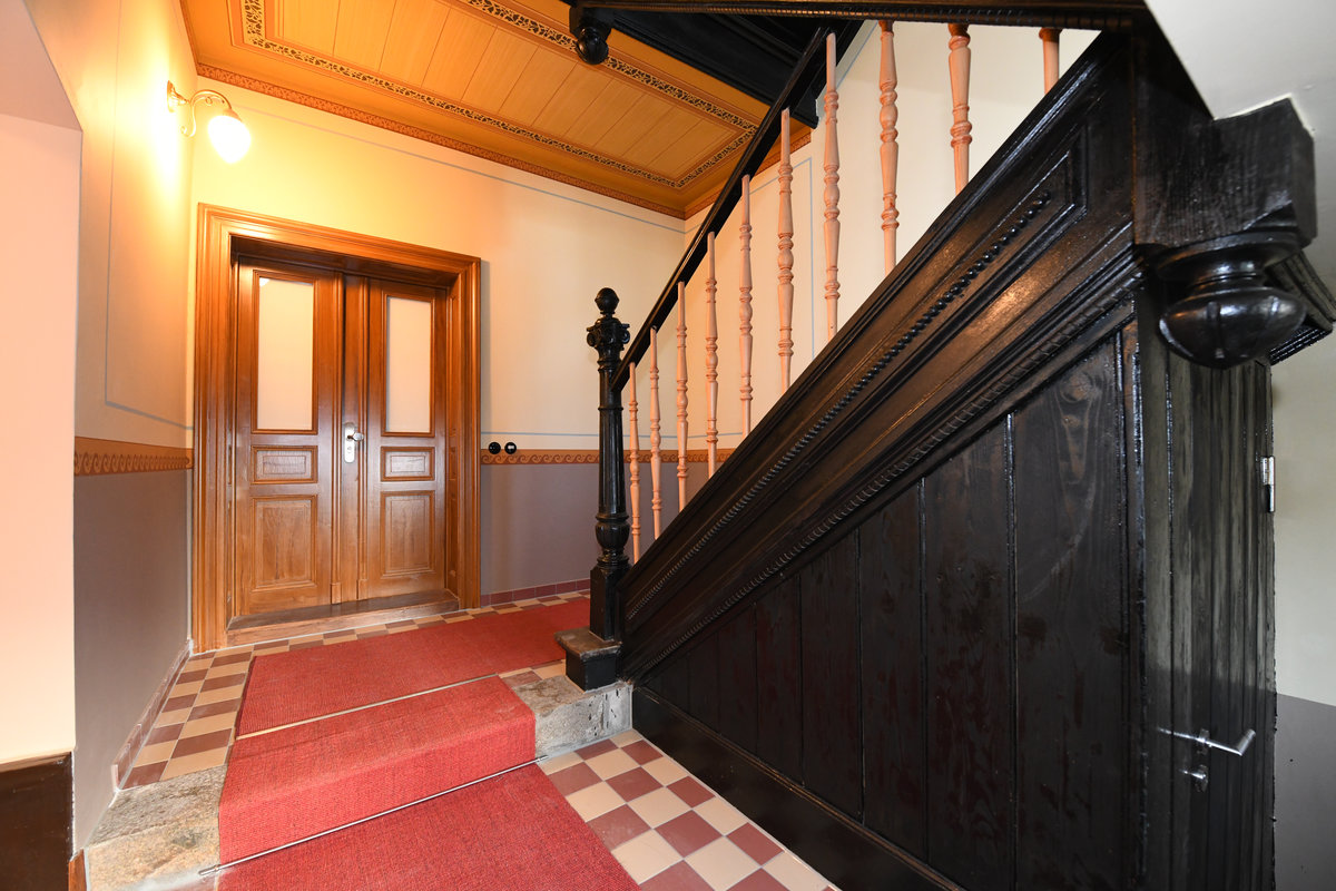 Aufwendig saniertes Treppenhaus mit historischen Malereien