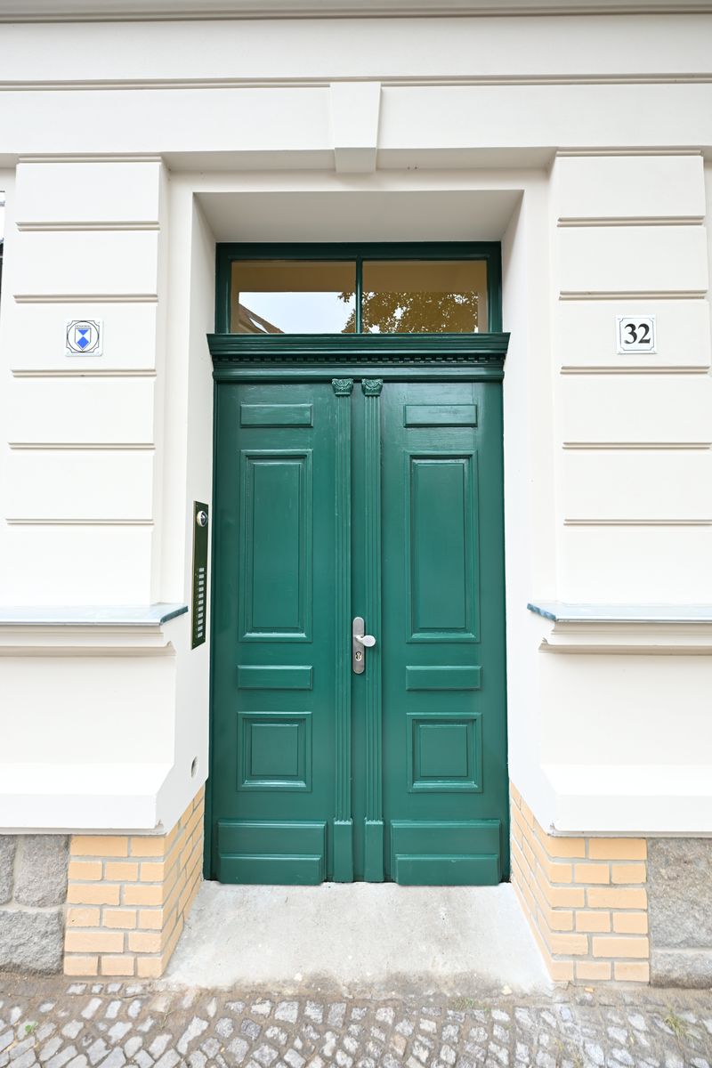 Parkett Fischgrät Eiche gebeizt mit Berliner Sockelleisten